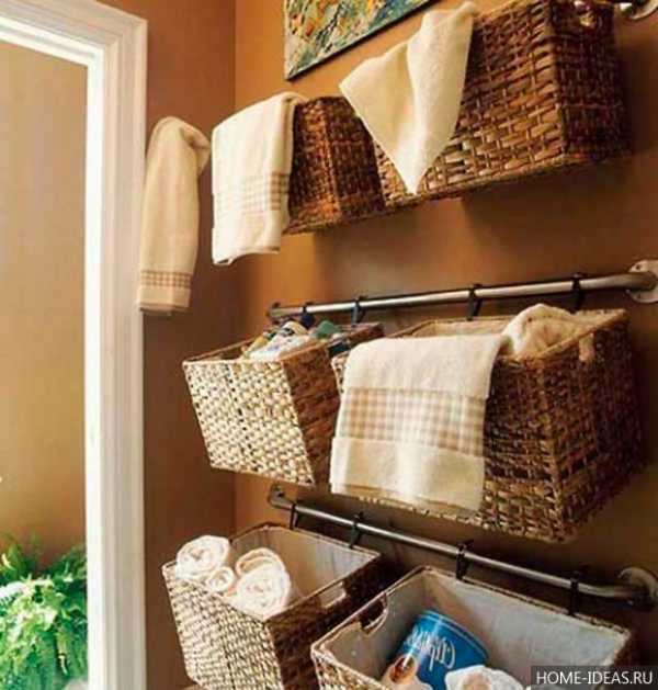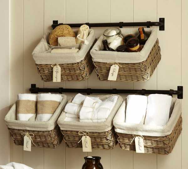 Не все органайзеры практичны и безопасны, хотя распространены очень широко. Настоятельно рекомендуем раз и навсегда расстаться с корзинами и открытыми ёмкостями для кистей. Конечно же, плетёные корзины могут быть атмосферными и визуально привлекательными, но это не лучший способ хранения вещей в ванной, особенно при наличии излишней сырости. Часто бытовые мелочи попросту путаются и даже теряются в недрах этого изделия, а деликатные элементы гардероба могут пострадать. Действительно удобным методом использования таких корзин будет лишь хранение в них одежды для стирки.
