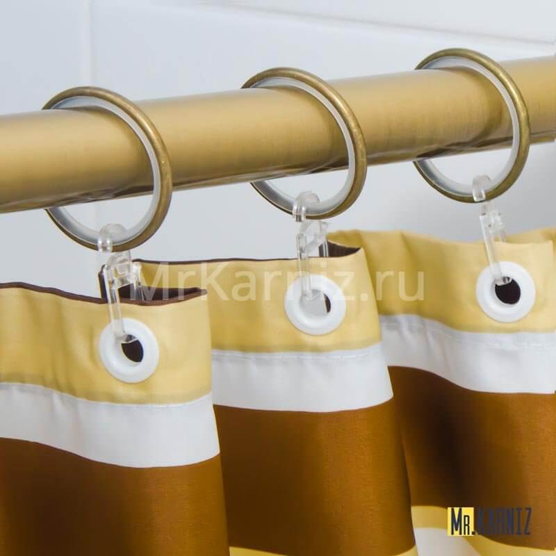 Выделяют два основных вида конструкции: большие и маленькие кольца. Выбор больших колец значительно облегчает процесс использования. Мелкие кольца предполагают использование крючков, которые становятся соединением карниза и люверсов.