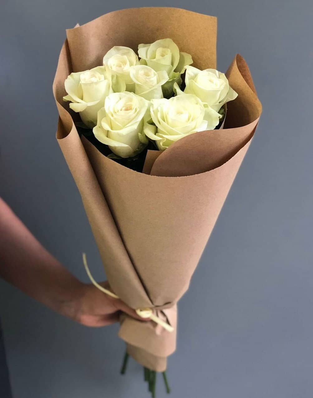 Оформление букета в крафт-бумагу даёт возможность окружающим в полной мере оценить всю роскошь и совершенство цветов. С ней внимание будет приковано не к красивой обвёртке, а к самому сердцу композиции.