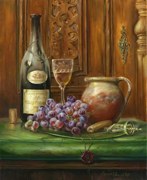 Представляю на ваш «суд» одну из моих картин, с работы гениального художника Toth Gabor. Меня вдохновила пыльная бутылка. Я опишу этапы её создания, но претендовать на полноценный урок не буду, нет навыков учителя.