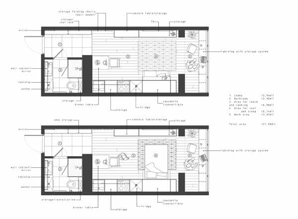 Что же касается расположения мебели в однокомнатных квартирах-студиях, то сегодня придумано уже множество интерьерных вариантов, как превратить небольшой метраж в комфортное жилье, с учетом всех потребностей проживающего там человека. Здесь главное учесть основные принципы зонирования пространства, а также воспользоваться небольшими хитростями и новшествами, такими как складывающаяся мебель, выдвижные или подъемные-кровати. Даже самую маленькую квартиру-студию можно превратить в удобное уютное жилое помещение, в котором не будет ничего лишнего, но также найдется место для хранения всех необходимых вещей, достаточно лишь заранее продумать организацию жилого пространства.