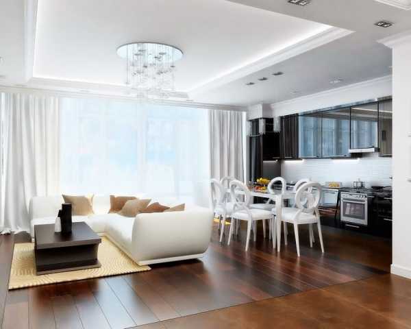 Объединение комнат позволяет создать максимально просторное помещение, насколько это в принципе возможно с учетом имеющихся квадратных метров