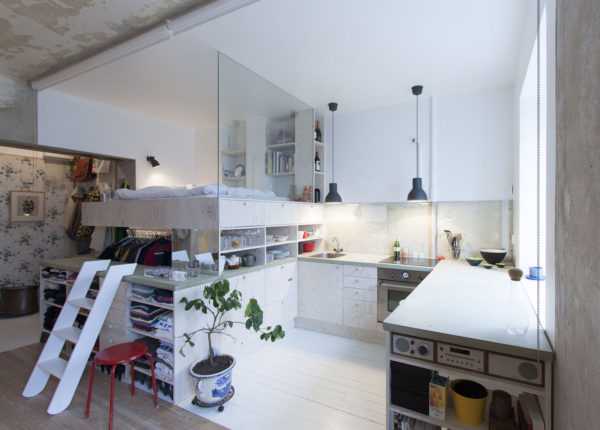 - Многофункциональная мебель: диван-трансформер, кровать-чердак, встроенная техника. Такие предметы интерьера не только сэкономят место, но и спрячут лишние вещи, а обстановку сделают более нестандартной.