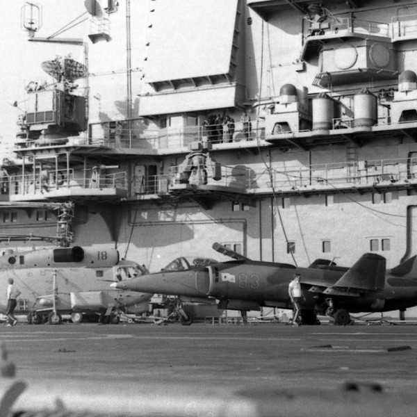 Як-38 – палубный учебно-тренировочный самолет ОКБ Яковлева, вертикального взлета и посадки. Предназначался для обучения летчиков палубной авиации. Як-38У базировался на борту следующих тяжелых авианесущих крейсеров: «Минск», «Киев», «Адмирал Горшков» и «Новороссийск».