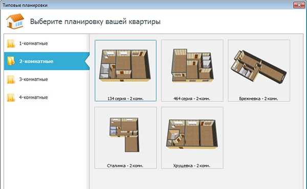 В программе представлен каталог типовых планировок квартир: «хрущевка», «сталинка» и пр.