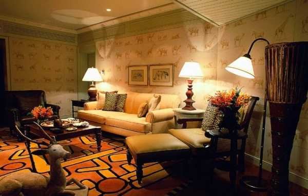 Даже идеальный африканский интерьер можно убить неправильным светом. Не подойдет в такой интерьер холодный свет, поэтому выбирайте лампочки теплого света. Скрыть холодный свет помогут желтоватые абажуры, плафоны люстр и светильников теплого оттенка.