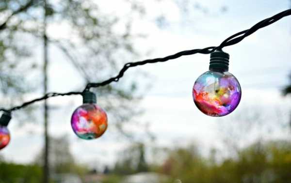 Если вы всегда считали, что акварель подходит только для интерьера — пора передумать. Может быть, двор у вашего дома уже украшает гирлянда из лампочек, а может, вы только подумываете о том, чтобы купить такую — в любом случае, раскрасить такие лампочки акварельными красками — отличная идея. Они будут не только замечательно смотреться днем, но и источать мягкое разноцветное свечение после заката.