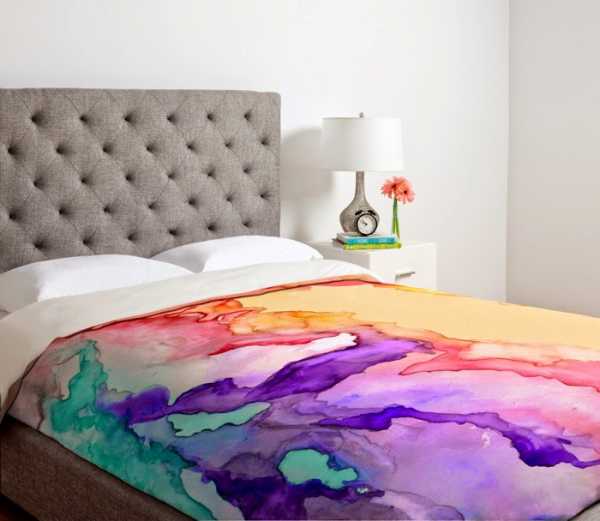 Одной из ценных особенностей техники акварели можно назвать образование мягких переходов от одного цвета к другому, формирование красивейших градаций и общий, удивительно характерный силуэт узора в результате. Нельзя не согласиться с тем, что для спальни акварельные узоры являются просто находкой, они невероятно эстетичны.