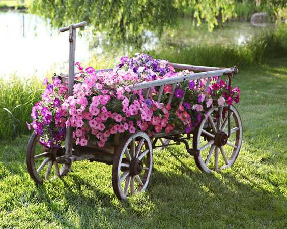 Англичане не любят выбрасывать старые вещи, вместо этого, после небольшой реставрации, находят для них интересные дизайнерские решения. Например, английский сад, в котором легко вписывается в общий вид бабушкина тачка или большие жестяные банки, особенно, если они стилизованны под старину. Кстати, оригинально будут выглядеть цветы, если вместо обычного горшка посадить их в такую жестянку.