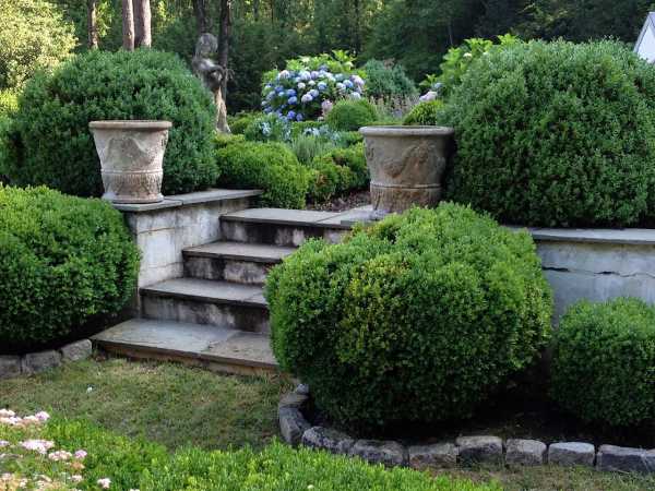 Английский парк – это еще и деревья. Для изгороди подойдут тис (Taxus), граб (Carpinus), восточная туя или плосковеточник (Platycladus orientalis), самшит (Buxus), магнолия (Magnolia). Они хорошо переносят стрижку и формовку, подходят для создания топиарных фигур. Скроют забор вечнозеленые ели (Picea abies, Picea orientalis), можжевельники (Juniperus communis, Juniperus virginiana), сосны (Pinus sylvestris).