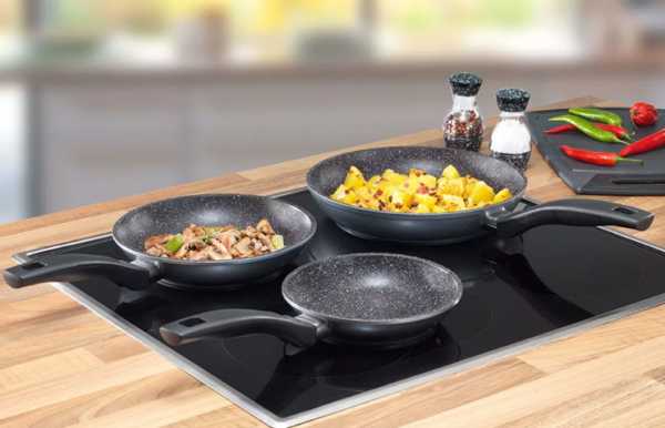 К сведению, каменная сковородка может использовать тот же алюминий. Поэтому, не сильно зацикливайтесь на самом названии. Также, здесь подразумеваются гранитные и мраморные изделия. И хотя производитель может назвать свою продукцию так, как ему заблагорассудиться, состав каменной посуды один и тот же.