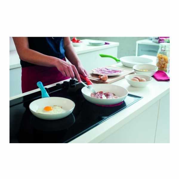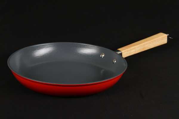 Основной компонент этого материала – обычный песок, благодаря чему его можно считать экологичным. Поверхность такой сковороды создает очень приятный эффект скольжения, снижая расход масла. Керамическая сковорода нетоксична даже при высоких температурах, намного меньше боится механических повреждений при готовке или мытье, но легко выходит из строя при падении, резком перепаде температур (например, при обливании холодной водой сразу после готовки), мытье в посудомойке. Однако антипригарные свойства у керамического покрытия – одни из лучших.