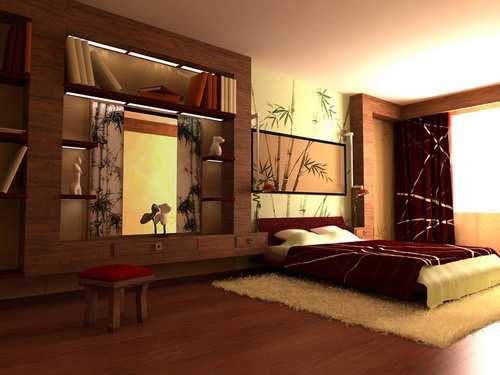 Стены спальни обшивают деревянными панелями или же красят, используя все тот же геометрический узор.