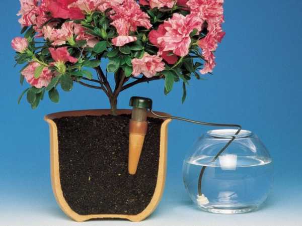 - Интенсивность стекания воды в самодельных системах регулируется изменением высоты расположения емкости с водой над горшком с растением.