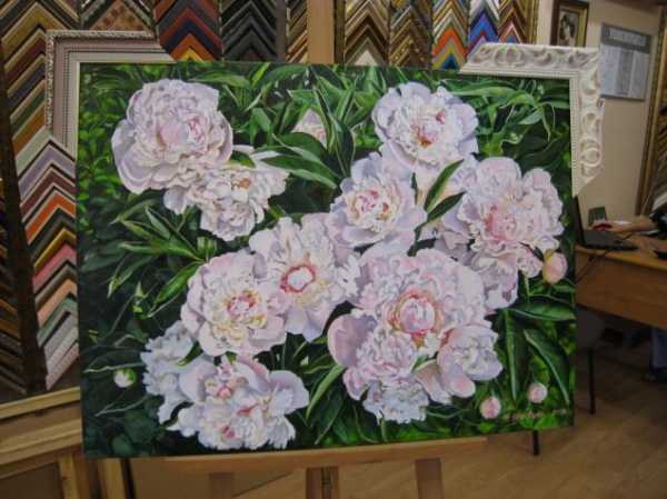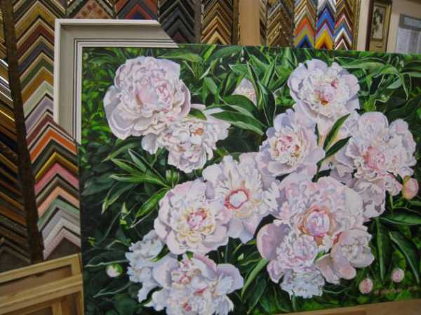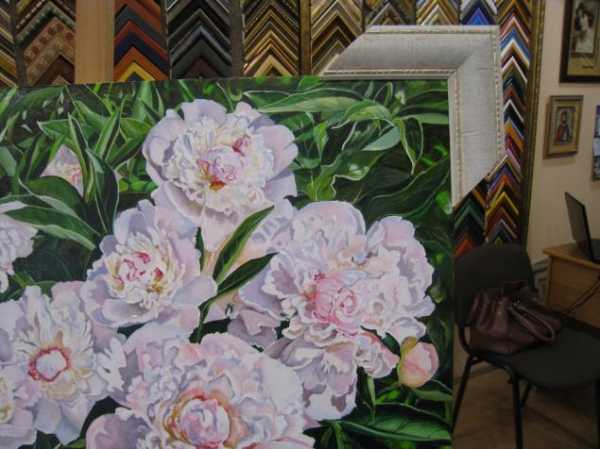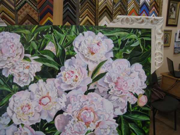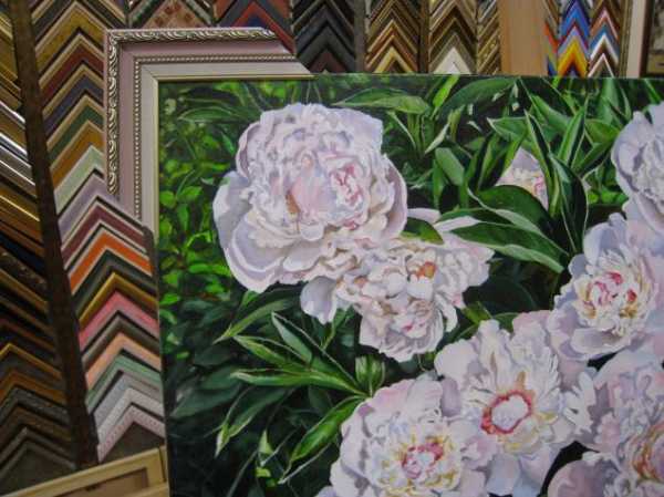 Вот так мы подбирали варианты оформления в багет картины с пионами. Остановились на первом варианте)