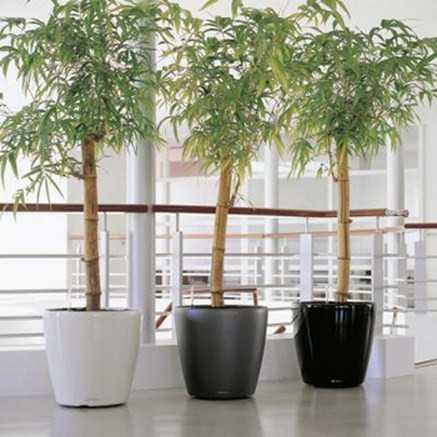 Очень часто в офисах можно увидеть Бамбук, живущий в красивых емкостях с водой. Уход при таком культивировании заключается в постоянной подмене воды. Это делается один раз в неделю или если стоит очень жаркая погода, то один раз в четыре дня. Минеральные подкормки добавляются просто в воду.
