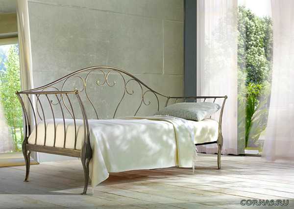 Кованные модели очень часто дополняются дополнительными элементами повышающими комфорт, обитые подлокотники, банкетки со спинкой.