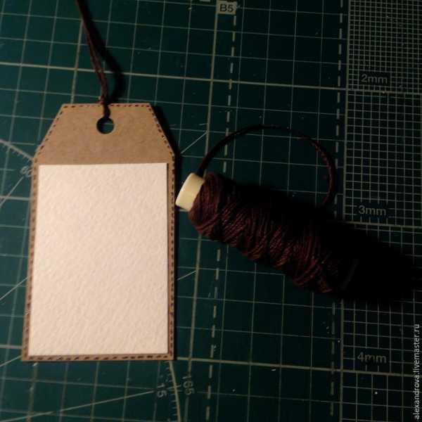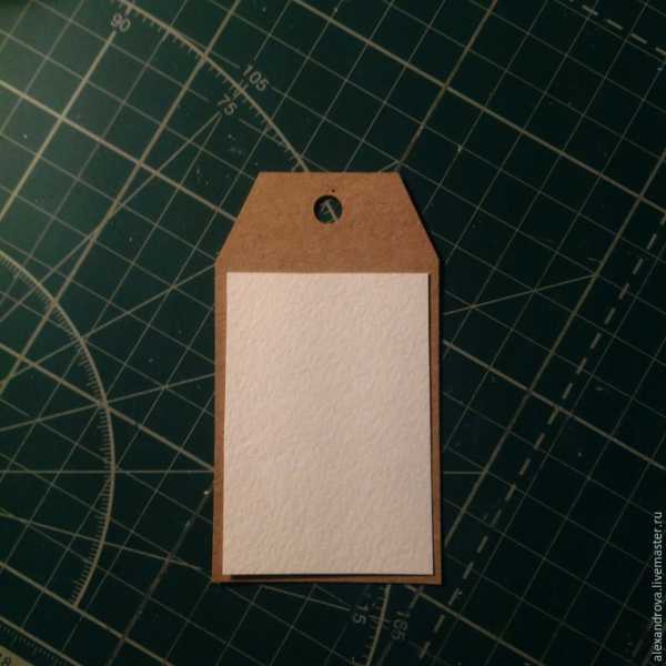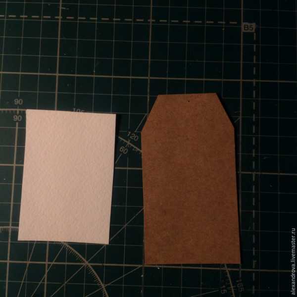 Вырезаем из плотного картона основу для бирочки. Форму вы можете выбрать любую, но я предпочитаю прямоугольник примерно 5 на 9 см.