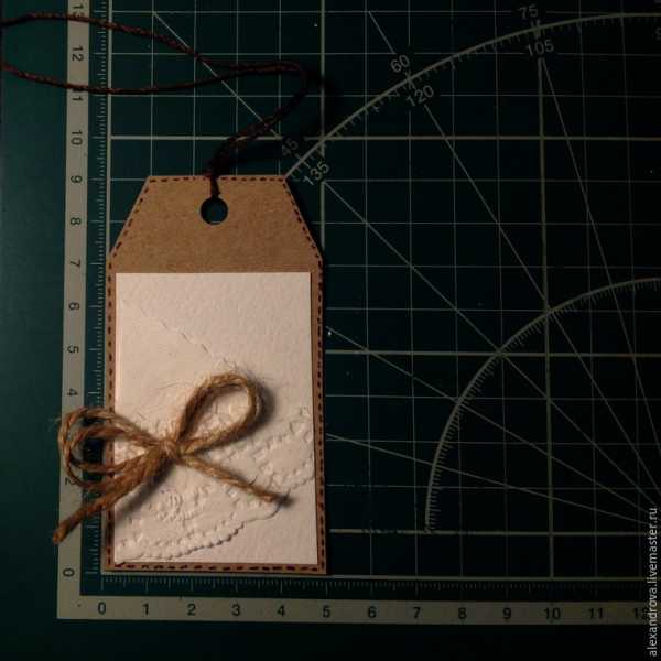 Собираем всё вместе, приклеиваем бантик и у нас получается вот такая, очень простая бирочка.