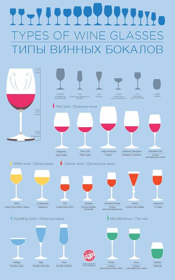 Хотите разобраться в типах фужеров и не опростоволоситься на ответственном приеме? Тогда скорее изучайте инфографику! Она наглядно продемонстрирует, какая форма бокала соответствует тому или иному типу вина.