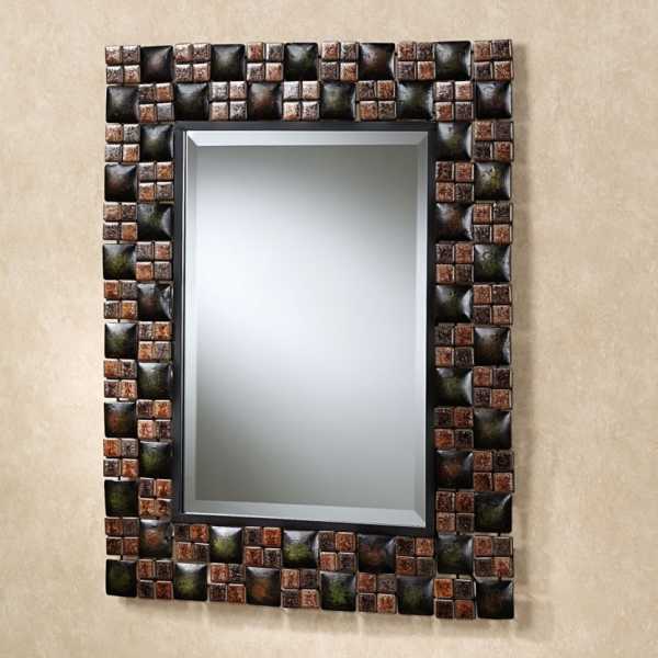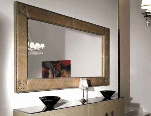 Благодаря такому нестандартному, но при этом очень элегантному обрамлению из кожи, кожзама или экокожи получается создать очень изящный дизайн. Для украшения рамы применяют кожаные изделия обладающие различными цветами и структурами, например гладкие, тисненные, ламинированные или принтованные.