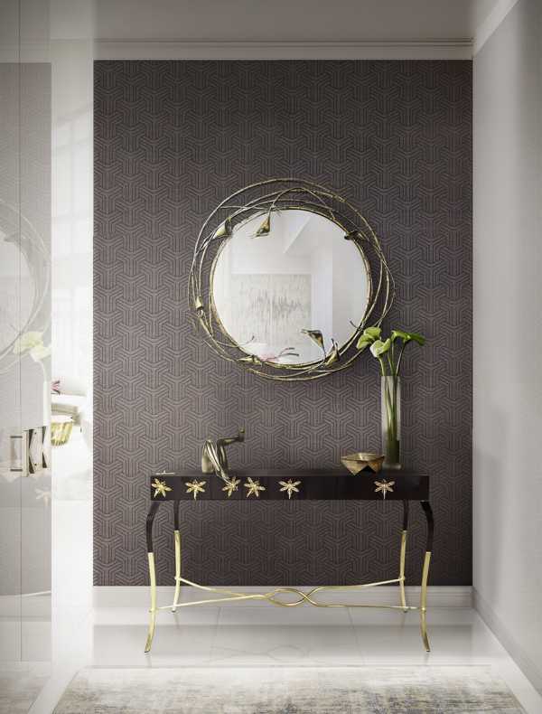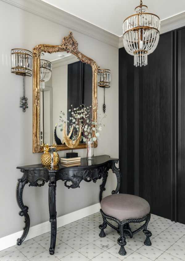 Не только к выбору зеркала стоит подходить внимательно, но и его оформлению. Правильный декор придаст ему оригинальность и роскошность. Отлично с этим справятся красивые светильники, входная дверь в цвете венге, утонченный трельяж.