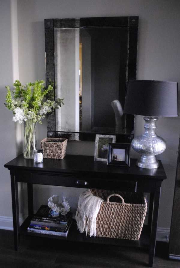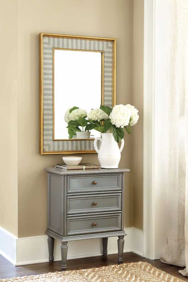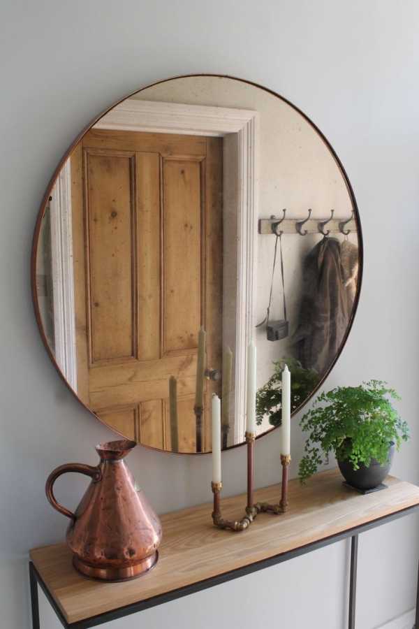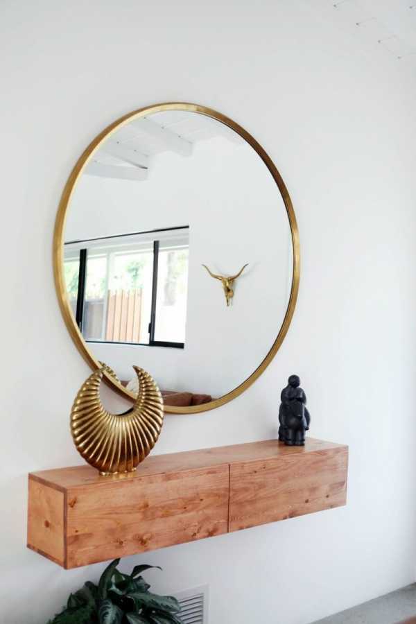 Зеркало – отличный способ «разбавления» простых дизайнов. Вы сможете попробовать несколько вариантов размещения и решить, какой лучше и удобнее.