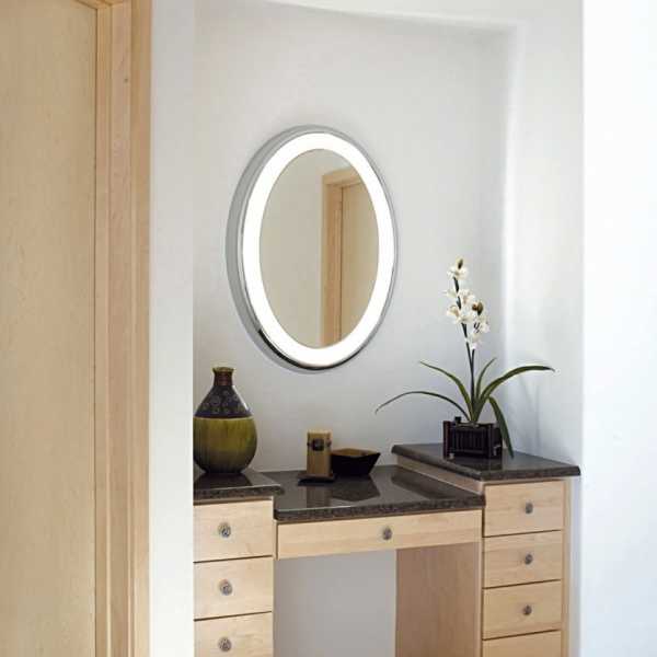 Лампы, расположенные выше линии взгляда, создадут качественное и правильное освещение для зоны возле зеркала и для того, что в нем отражается.