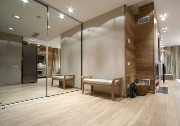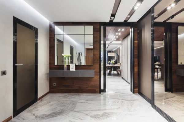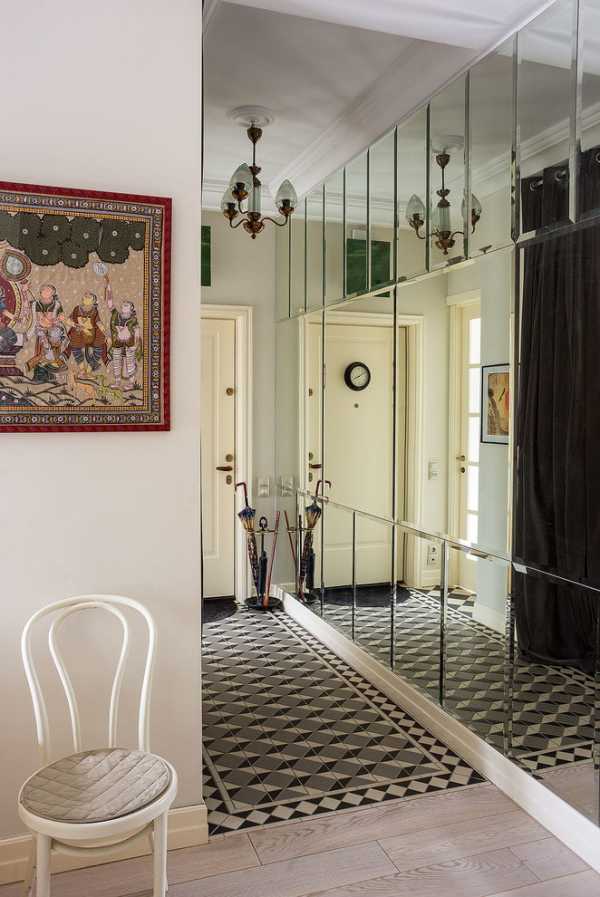 В прихожей можно выполнить специальную отделку из отражающих материалов. Зеркальная плитка смотрится стильно и нестандартно. Такое панно на стене поднимает потолок. Визуальный эффект от него будет невероятным. Он схож на иллюзию, которую способны творить фокусники.