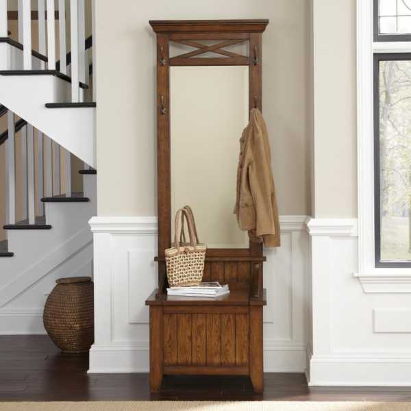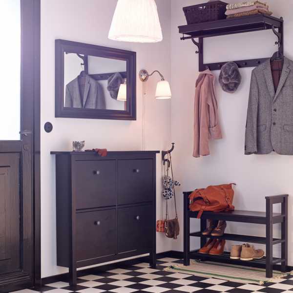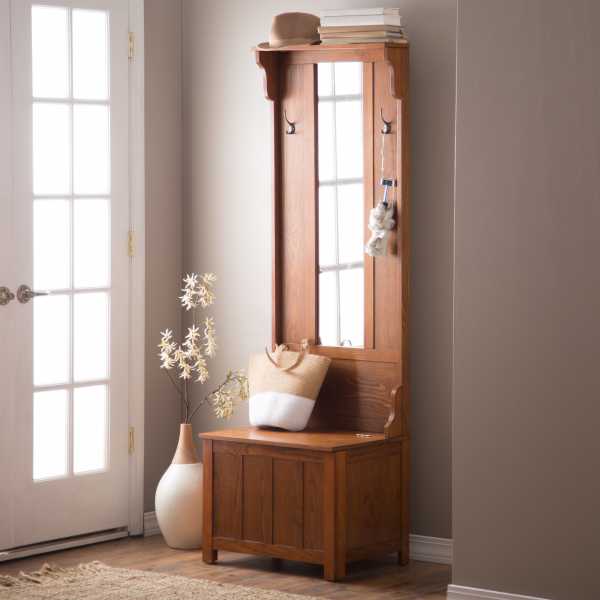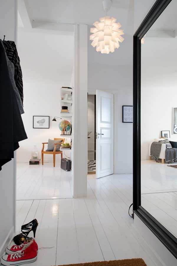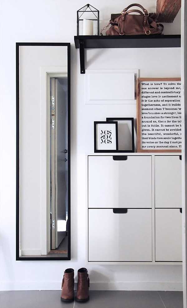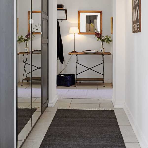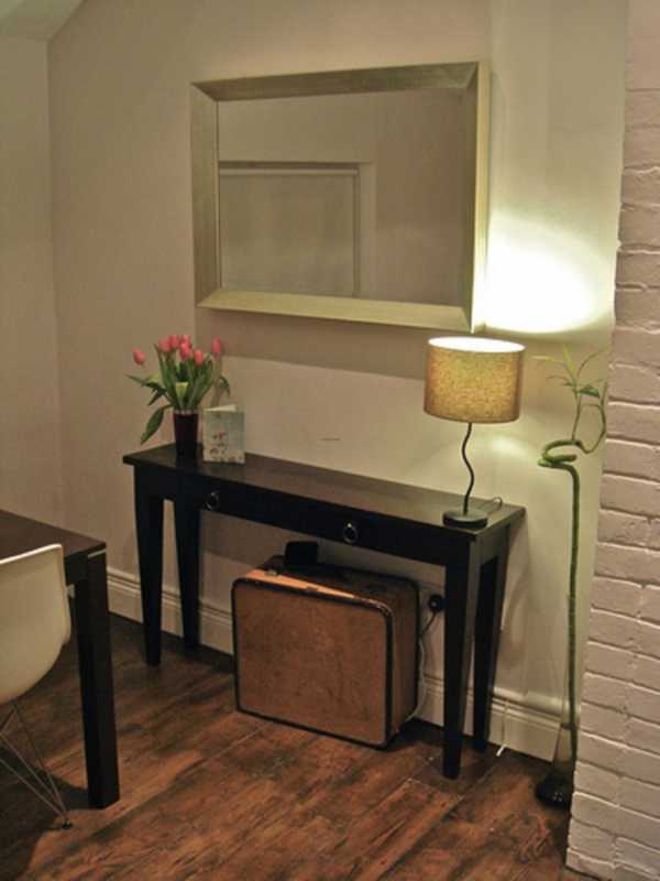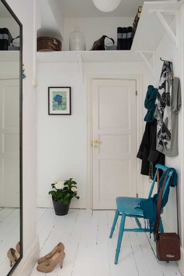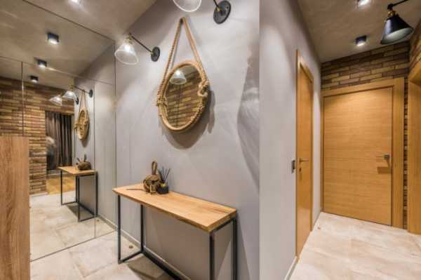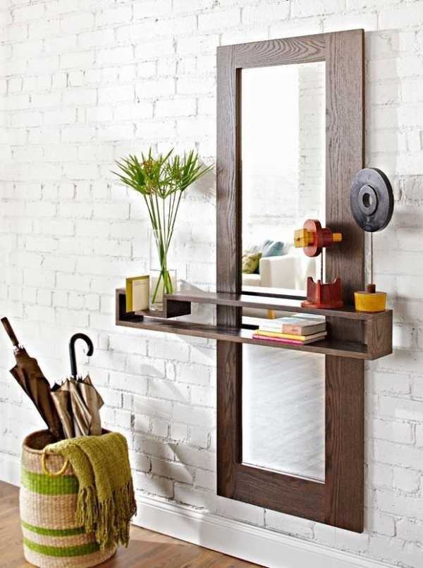 Для экономии места, можно повесить зеркало с полкой в прихожую. Рядом, отлично будет смотреться вешалка для одежды или обувная тумба. А все это дело украсить небольшими светильниками – получится отличная и стильная комната.
