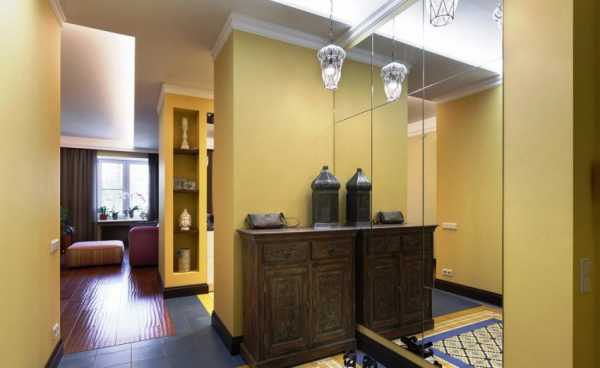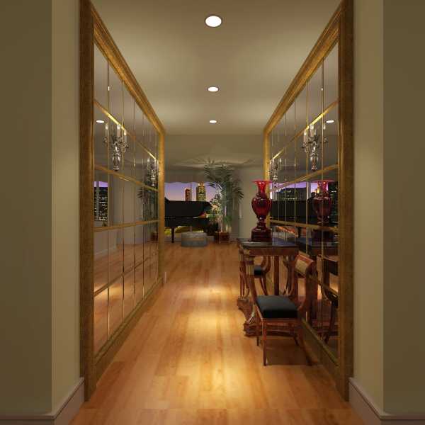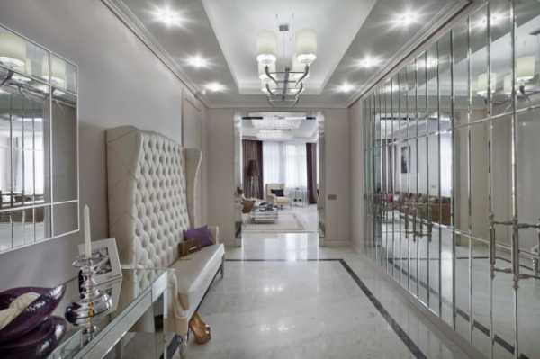 Интересным решением является зеркальный коридор. Оно предполагает установку сразу нескольких предметов, расположенных по разным сторонам. Уместно нахождение отражающих поверхностей напротив. Несмотря на оригинальность, такой прием используется редко. Так как не все чувствуют себя в такой обстановке комфортно.