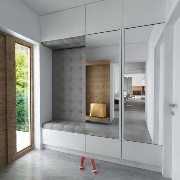 Не обязательно занимать целую стену. Шкаф с зеркалом в прихожей будет отлично смотреться, особенно если он небольшой и аккуратный. Конечно же, такой вариант подойдет для просторных помещений – не стоит тратить слишком много места. Зеркало наоборот визуально увеличивает пространство – важно правильно воспользоваться этим качеством.
