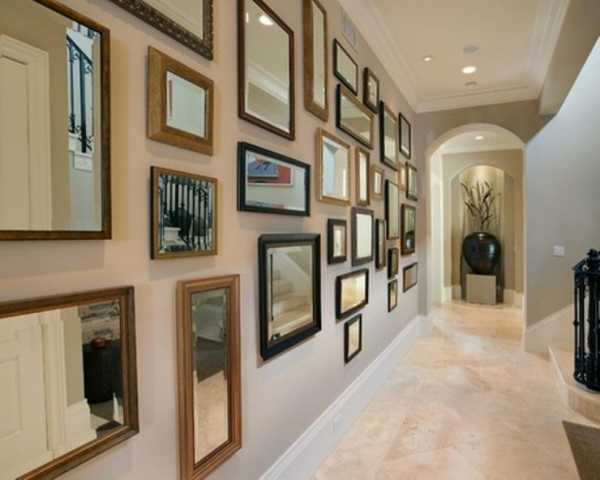 Рамки также разнообразны – простые и строгие деревянные решения, или кованые обрамления. Все это, так или иначе, впишется в прихожую и грамотно дополнит пространство.