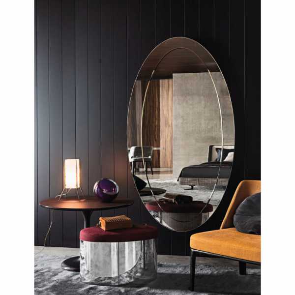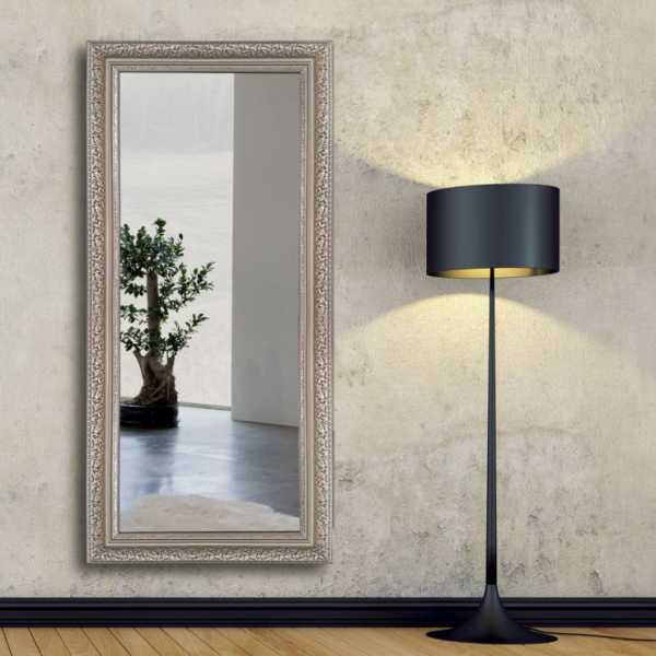 Такая конструкция занимает много места и поэтому больше подходит для просторных и хорошо освещенных коридоров. Напольные зеркала можно перемещать и разворачивать, они могут быть оформлены рамкой, оборудованы специальной стойкой, позволяющей изменять угол наклона, иметь овальную или прямоугольную форму.