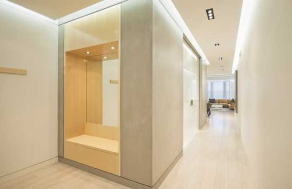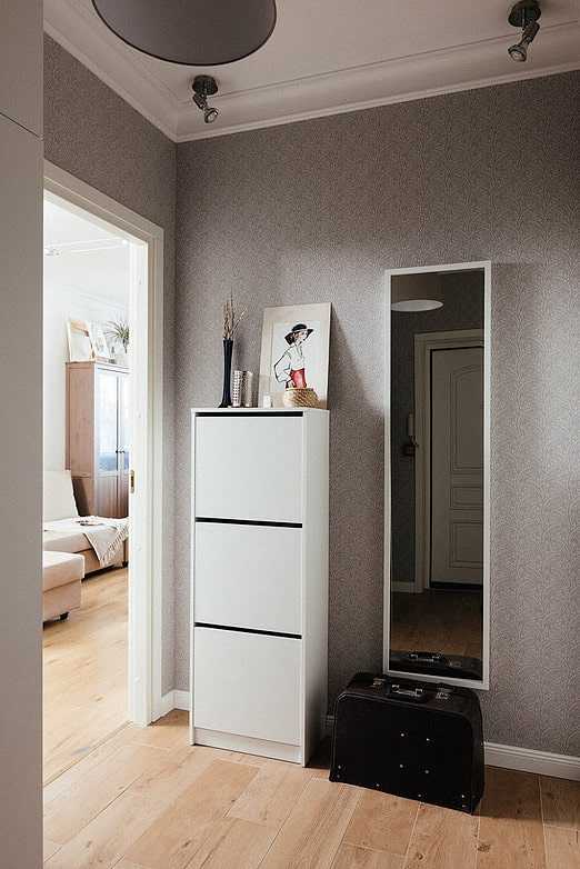 Такое дизайнерское решение позволяет сэкономить площадь и создать впечатление более просторного помещения, что особенно будет уместно для маленького или узкого коридора в квартире типа хрущевка.