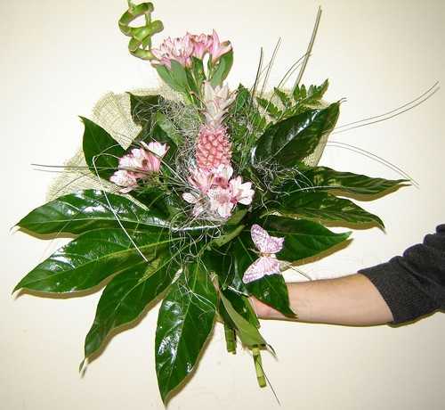- А этот букет поражает меня своей оригинальностью. Данная флористическая композиция базируется на четких линиях, формах и контурах и может стать подарком как женщине, так и мужчине.