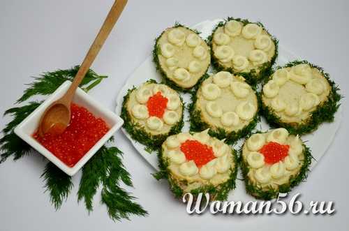 Заменив хлеб тарталетками, вы получите интереснейший эффект.