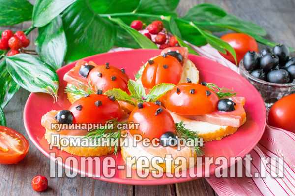 Детям понравятся вкусные и оригинальные бутерброды на праздник в виде зверюшек или их любимых мультяшных героев. Первый вариант – «Божьи коровки». Для них вам нужны следующие ингредиенты: