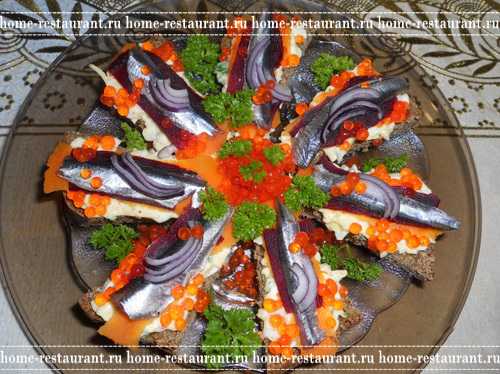 Если к праздничному застолью вы ожидаете, большое количество гостей, а рыбы или икры мало, то вы можете сделать эти деликатесные продукты не основными ингредиентами, а лишь украшением для ваших бутербродов.