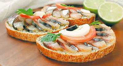 Из красивой «плотной» сельди с перламутровой спинкой можно сделать эффектные бутерброды, соединив их с предварительно тонко нарезанным огурцом, сливочным сыром, укропом, красным и зеленым лучком. Все это необходимо выложить на кусочки чёрного хлеба и идеальная закуска — готова.