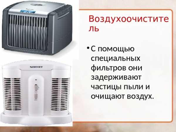 - С помощью специальных фильтров они задерживают частицы пыли и очищают воздух.
