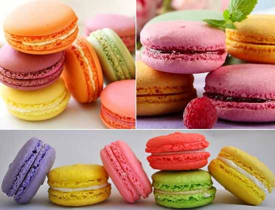 2. Макаруны — двухслойное печенье с начинкой, в котором тесто и крем с помощью красителей окрашивают в нежные пастельные тона.