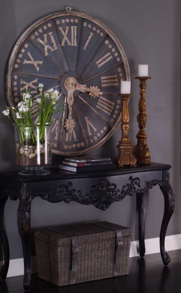 Часы обязательно должны сочетаться с другими аксессуарами и мебелью в интерьере;