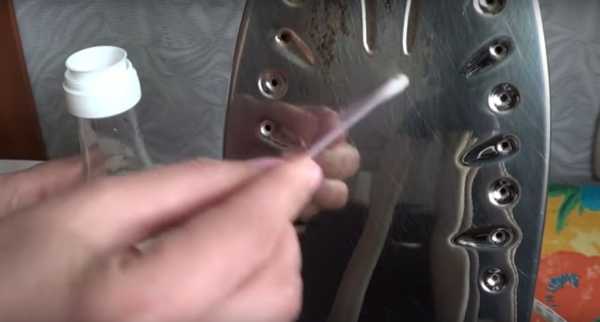 - От остатков накипи в отверстиях можно избавиться при помощи ватных палочек или зубочистки. Не примените для этого булавки и шпильки: подобным образом вы повредите поверхность утюга.