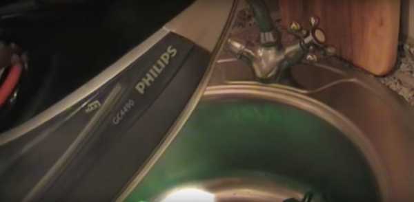- Наклоняете утюг над раковиной и сливаете всю воду вместе с отслоившейся накипью.