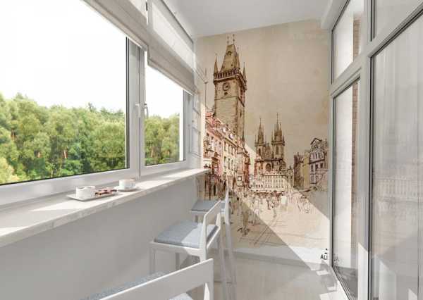 Еще одна идея для отделки балкона: оформить все, кроме одной стены, штукатуркой или вагонкой, а последнюю – обработать жидкими обоями для создания акцента.
