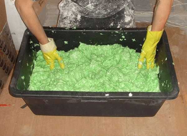 Изготовление декоративной смеси - На полу внутри балкона необходимо выложить полиэтиленовую пленку, после чего погрузить на нее приготовленный состав. Его заворачивают и оставляют в таком виде на 3 часа. Затем обои снова перемешивают и приступают к нанесению.