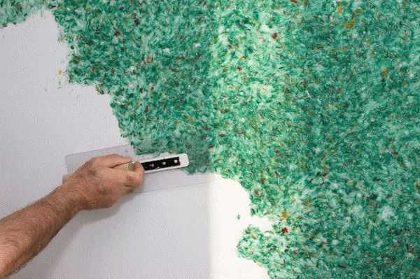 Нанесение жидких обоев - После нанесения рекомендуется прокатать стену цилиндрической гладилкой или использовать для этих целей бутылку.