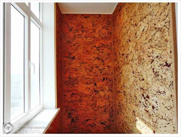 Отделка стен балкона с помощью пробки позволяет защитить их от возникновения вредоносных микроорганизмов, а также утеплить помещение.
