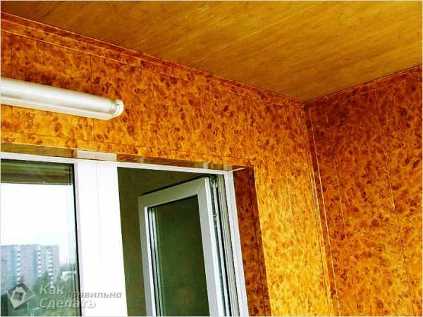 Обшить балкон пластиком не сложно. Пожалуй, это будет самым недорогим способом обделки, да и самым быстрым – панели довольно широки. Кроме того, у «пластиковой вагонки», как ее еще называют, очень небольшой процент отходов. Давайте рассмотрим пошаговый монтаж стеновых панелей на балконе. Этап утепления под обшивку в этом разделе мы пропускаем, так как оно делается точно так же, как описано в разделе «Отделка балкона вагонкой».